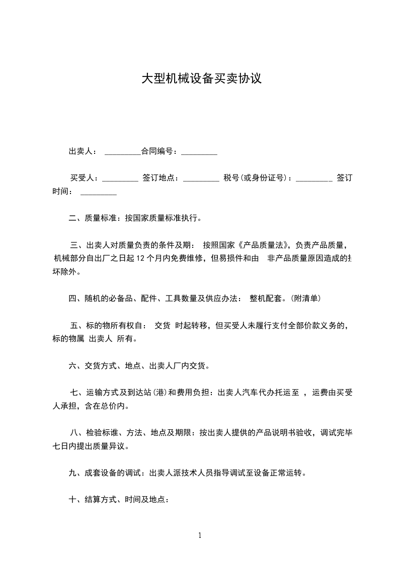 八、乙方向甲方付清本协议约定价的款项后,才能取得该机器的所有权,款清同时所有权归乙方所有,机器售出后不保修,不退不换。