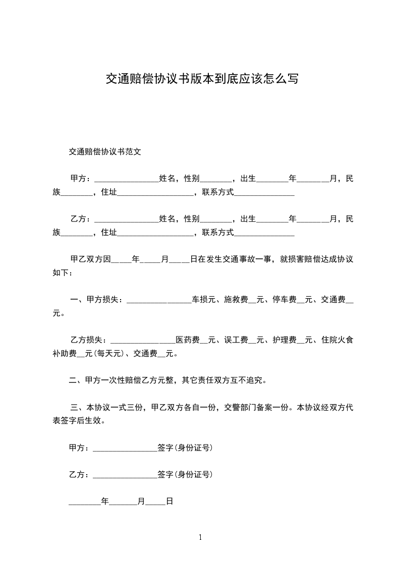 甲乙双方因_____年_____月_____日在发生交通事故一事,就损害赔偿达成协议如下: