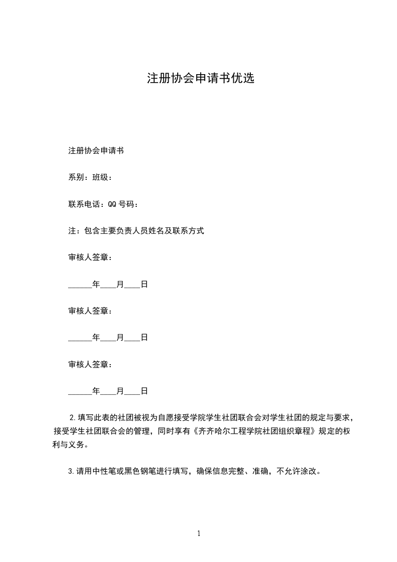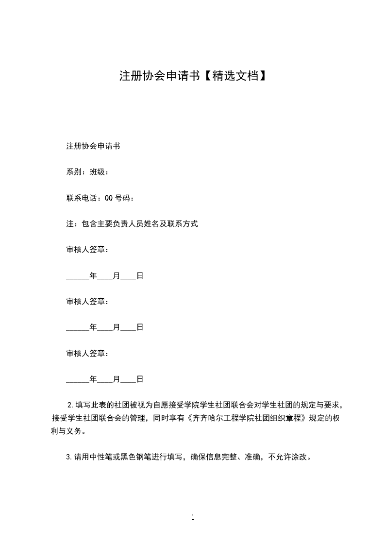 注册协会申请书