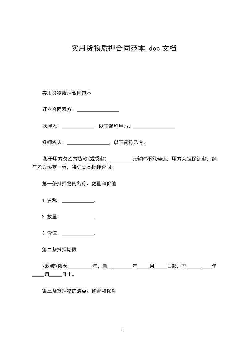 货物质押合同的范本