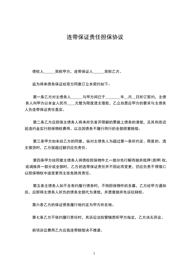 连带责任保证担保合同