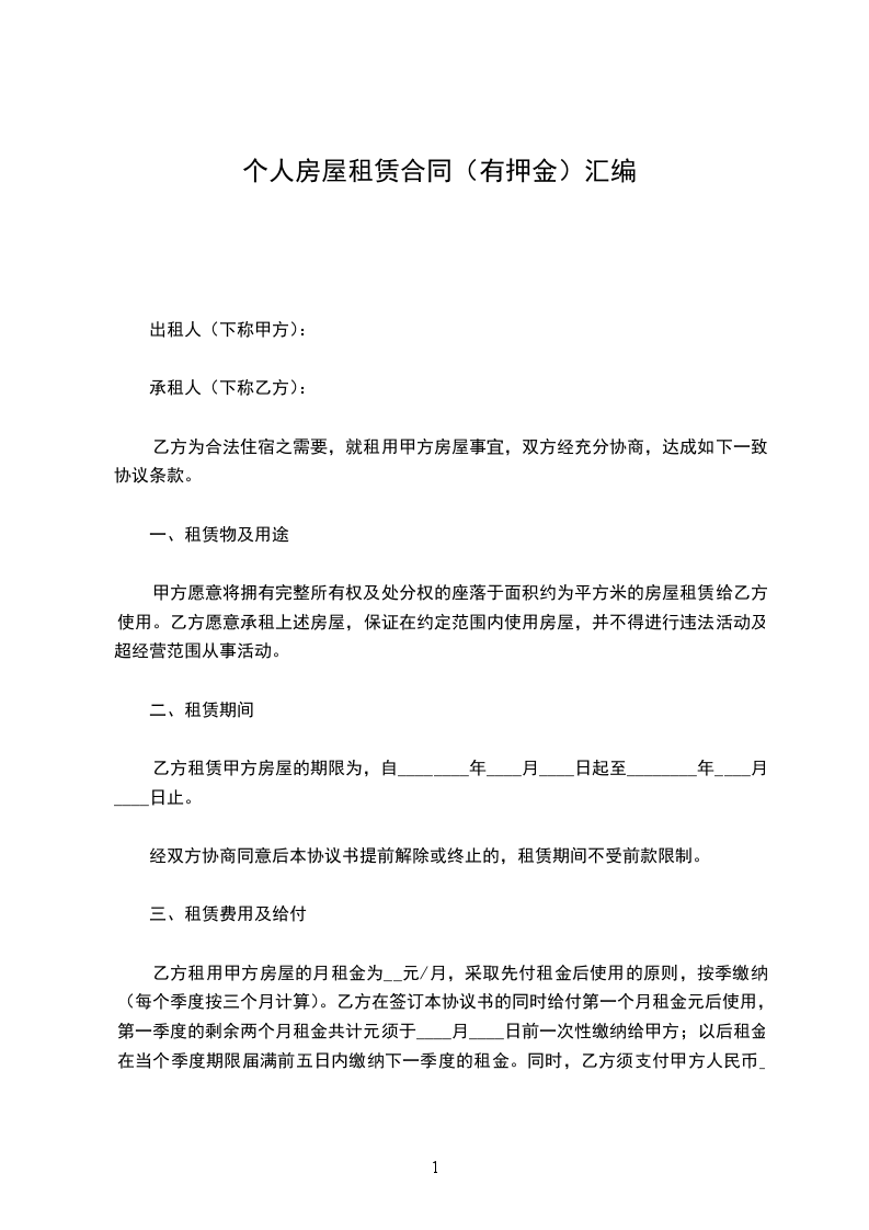 3.付款方式:按口月口季度口半年口年支付,另付押金______元,租房终止,甲方验收无误后,将押金退还乙方,不计利息;第1次付款计______元人民币;