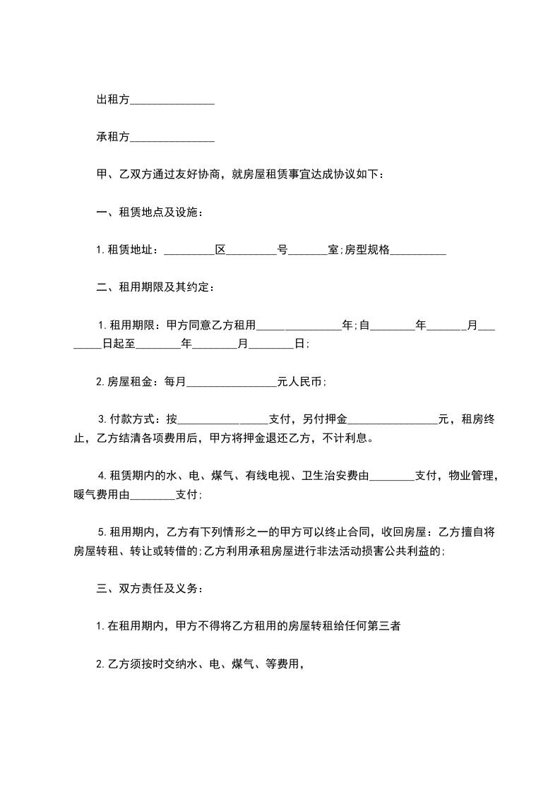 甲,乙双方通过友好协商,就房屋租赁事宜达成协议如下: