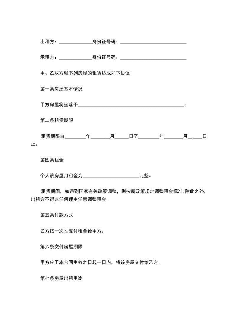 6.乙方入住该物业应保持周围环境整洁做好防火防盗工作,如发生事故乙方应负全部责任;