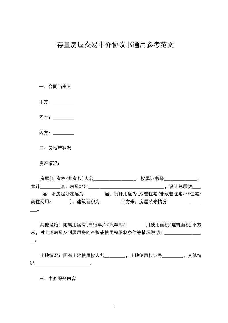 第一条 丙方为甲方提供以下[居间/咨询/代办手续/_________]房地产中介服务:_____________________