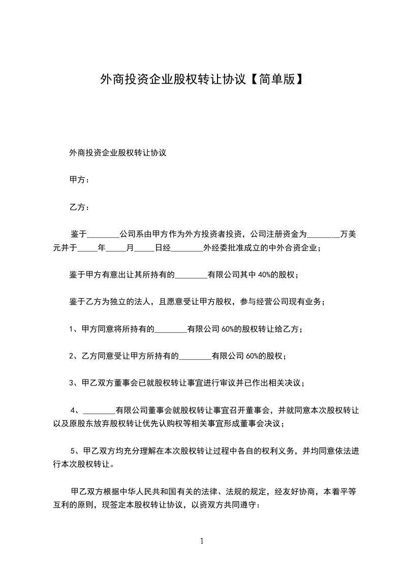 1、甲方同意将所持有的________有限公司60%的股权转让给乙方;