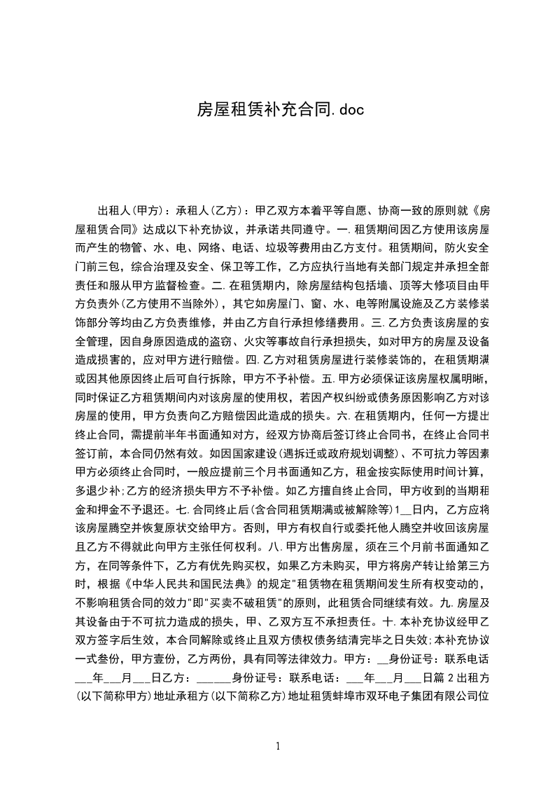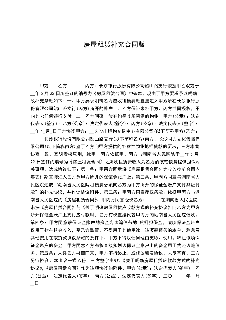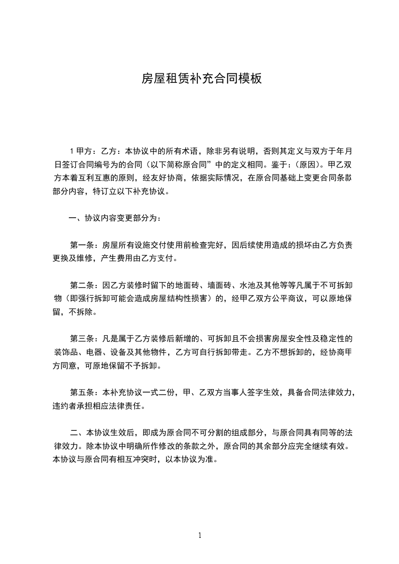 鉴于甲乙双方________年____月____日签订的房屋租赁合同(以下简称租赁合同),为进一步明确双方的权利义务,双方达成如下补充协议: