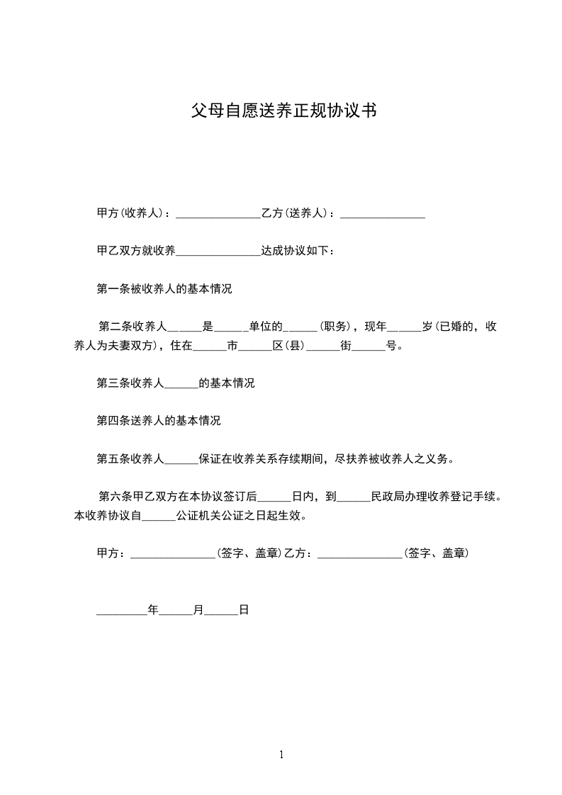 第六条甲乙双方在本协议签订后______日内,到______民政局办理收养登记手续。本收养协议自______公证机关公证之日起生效。