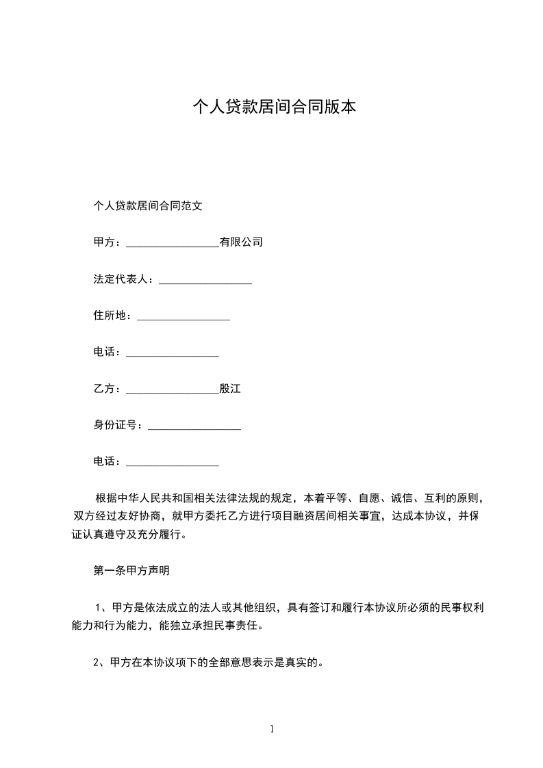 个人贷款居间合同范文