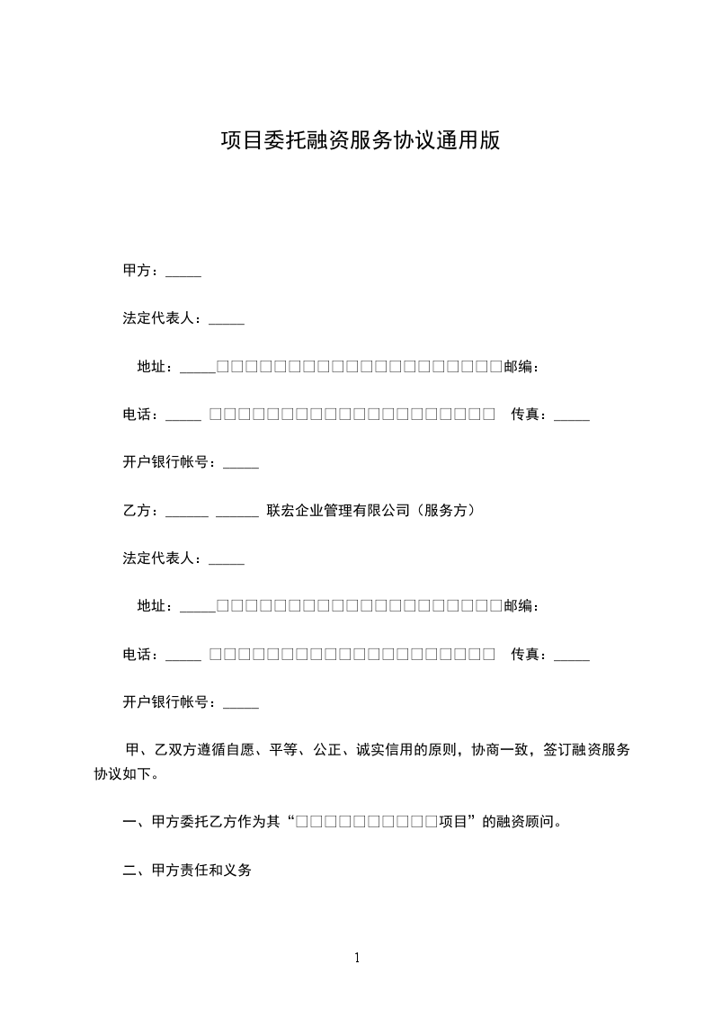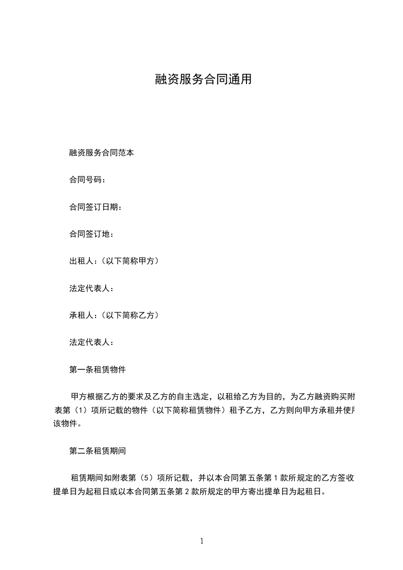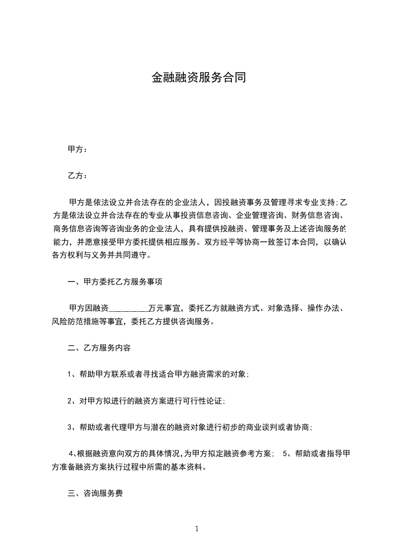 融资服务合同范本
