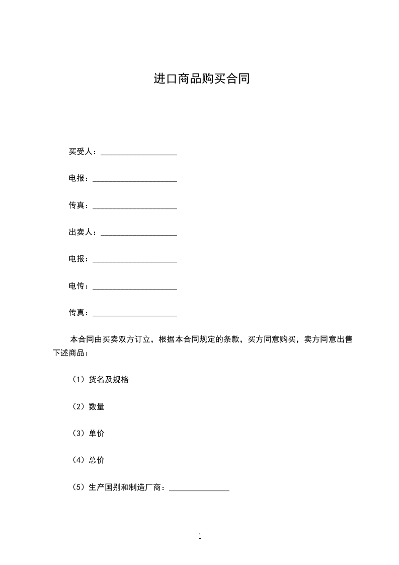 本合同由买卖双方订立,根据本合同规定的条款,买方同意购买,卖方同意出售下述商品:
