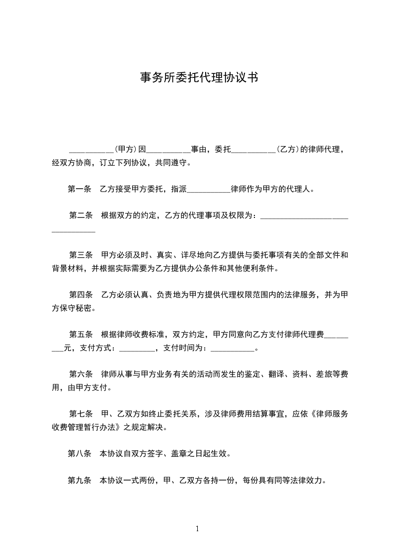 三、根据国家《关于业务收费标准》的规定,甲方向乙方支付代理费__元,标的费__元。