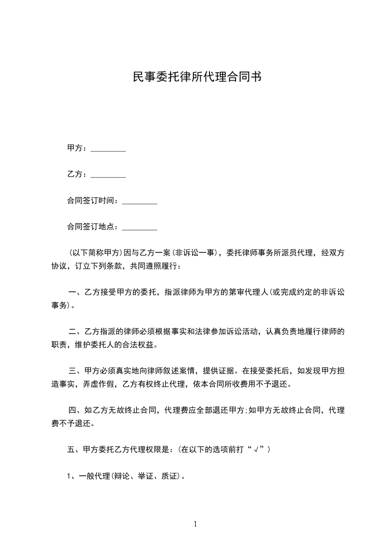 律所委托代理合同范本