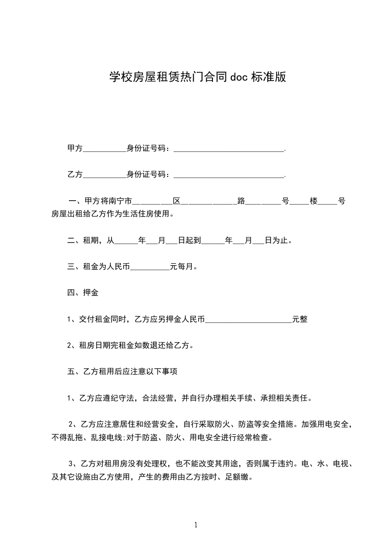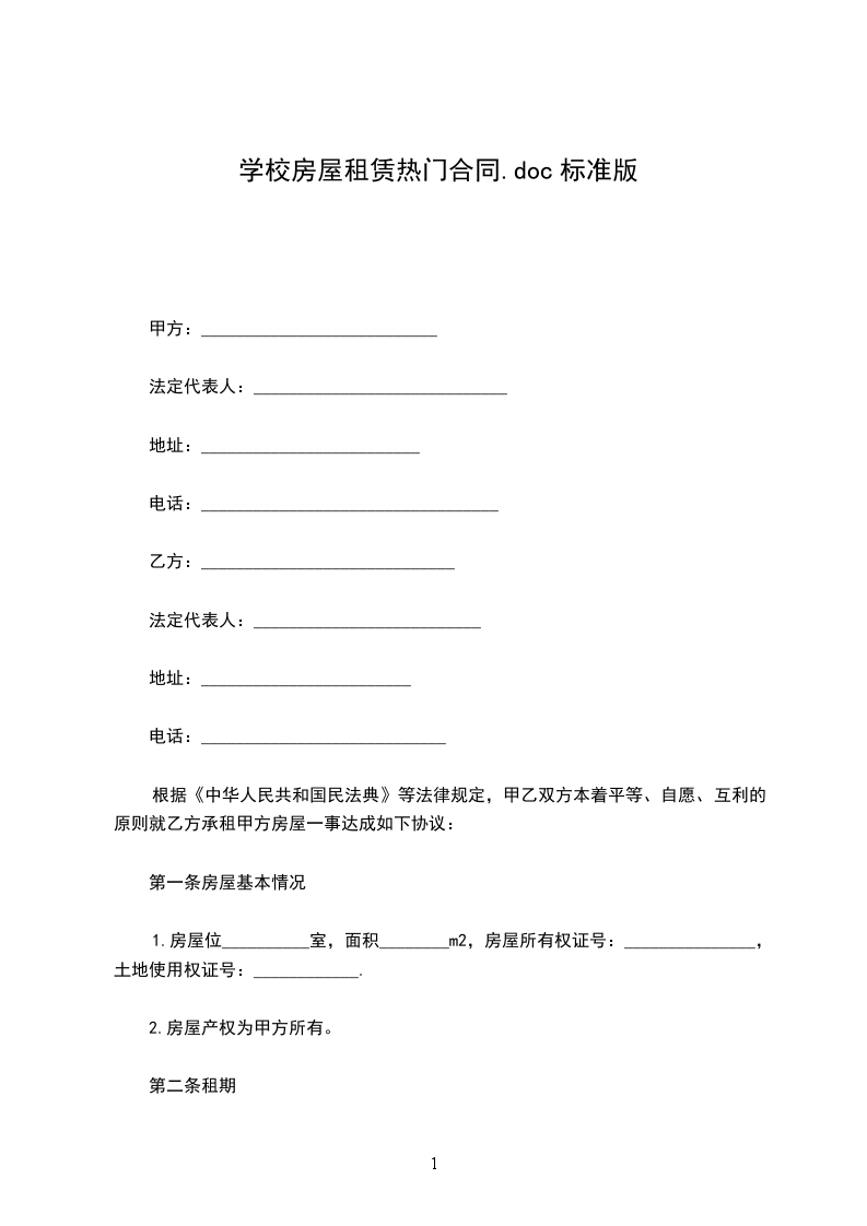 学校标准房屋租赁合同范本