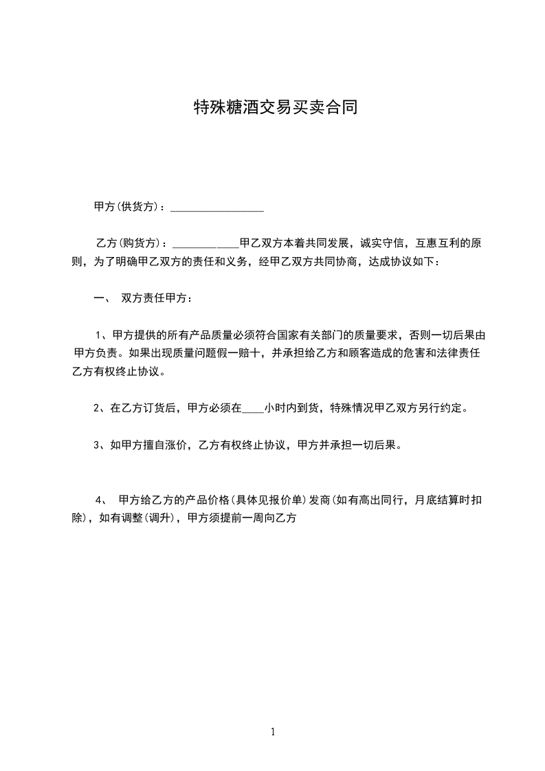 3、如甲方擅自涨价,乙方有权终止协议,甲方并承担一切后果。