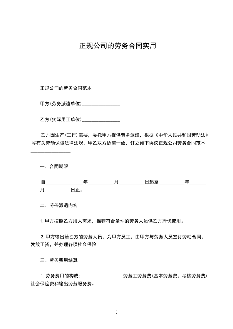 正规公司的劳务合同范本