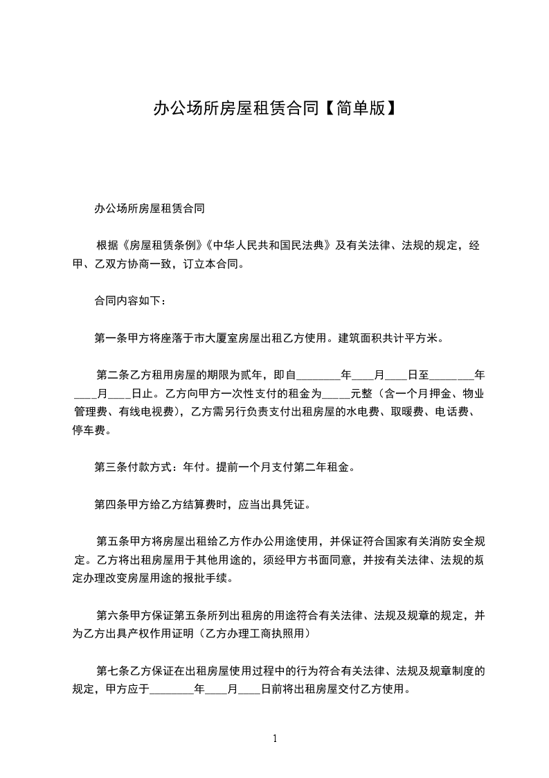 1.1乙方承租甲方位于房屋,房屋建筑面积____平方米。