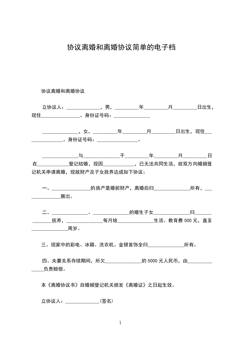 协议离婚和离婚协议