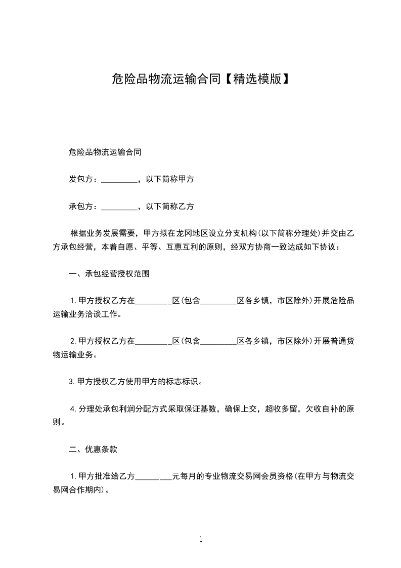 1.甲方授权乙方在_________区(包含_________区各乡镇,市区除外)开展危险品运输业务洽谈工作。