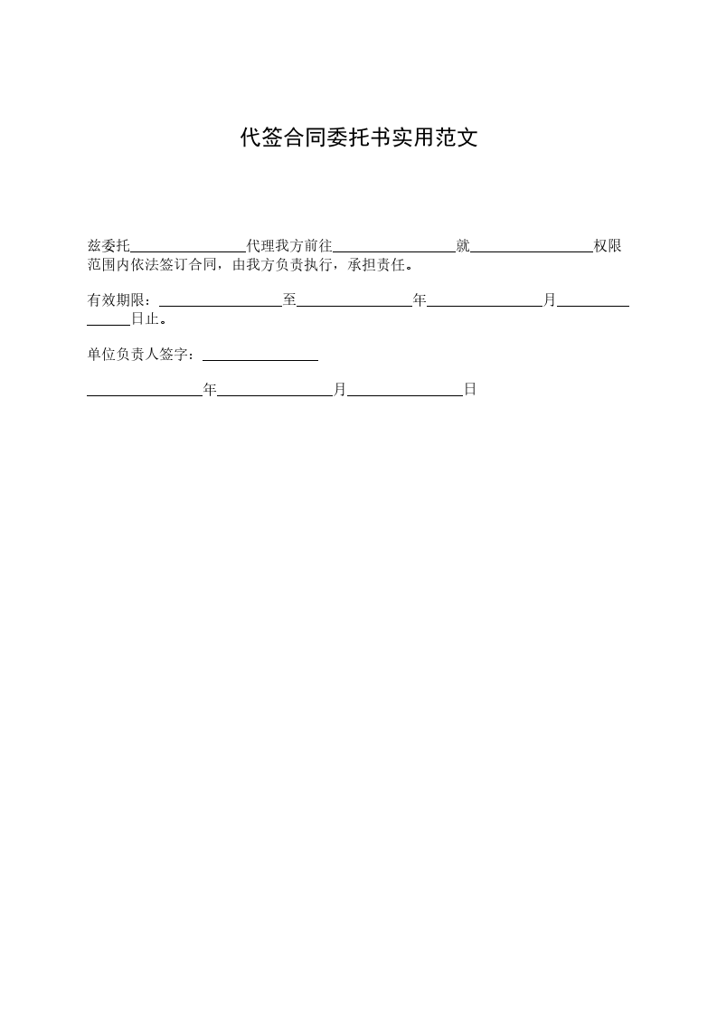 兹委托________________代理我方前往_________________就_________________权限范围内依法签订合同,由我方负责执行,承担责任。有效期限:_________________至________________年________________月________________日止。单位负责人签字:________________________________年________________月________________日