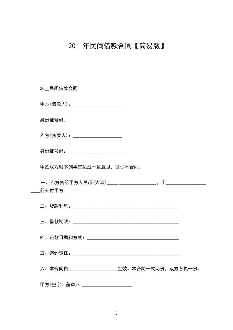 简单版民间借款合同范本