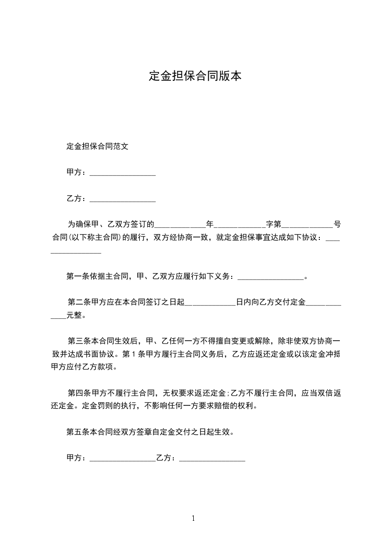 为确保甲、乙双方签订的_____________年_____________字第_____________号合同(以下称主合同)的履行,双方经协商一致,就定金担保事宜达成如下协议:_________________