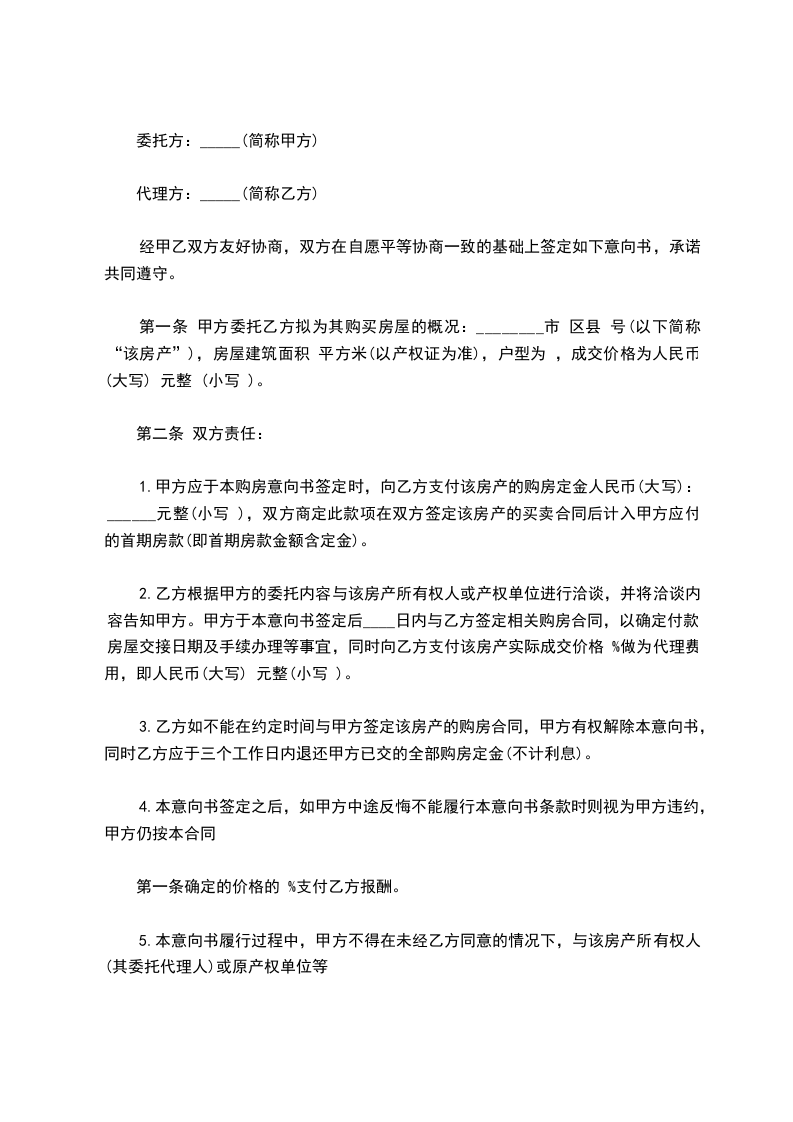 第一条甲方愿将座落_____________市__________区__________街__________段__________号的__________房(_____室_____厅_____平米)卖于乙方,永远为业,空口无凭,立字据为证。