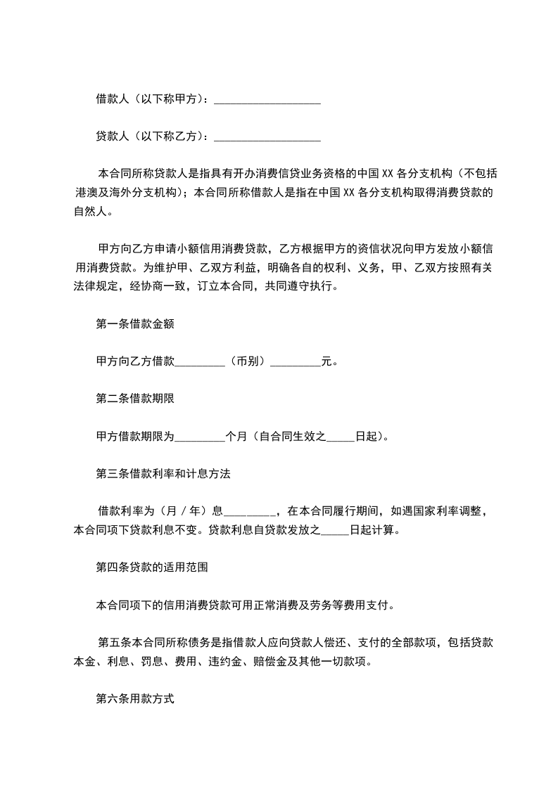 甲方向乙方申请小额信用消费贷款,乙方根据甲方的资信状况向甲方发放小额信用消费贷款。为维护甲、乙双方利益,明确各自的权利、义务,甲、乙双方按照有关法律规定,经协商一致,订立本合同,共同遵守执行。