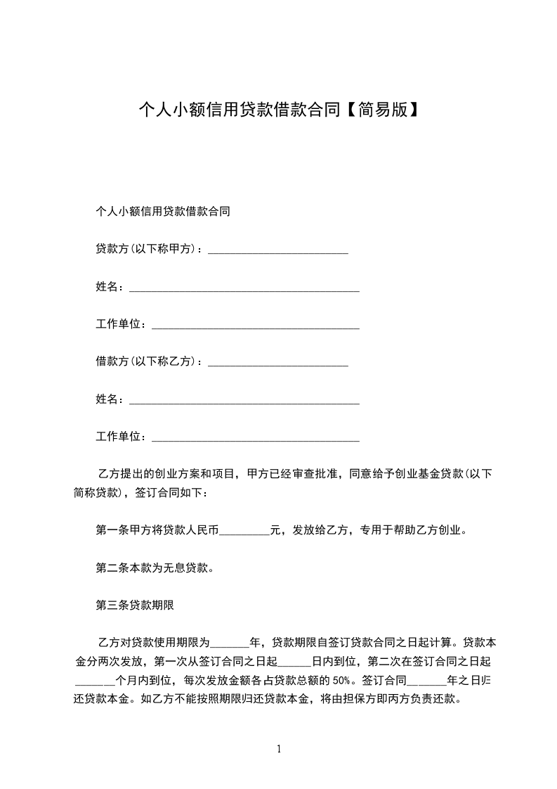 小额信用贷款借款合同范本一
