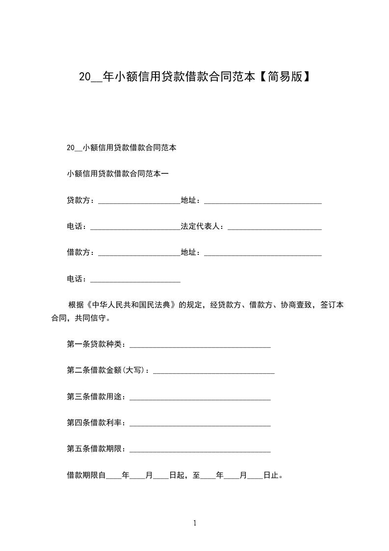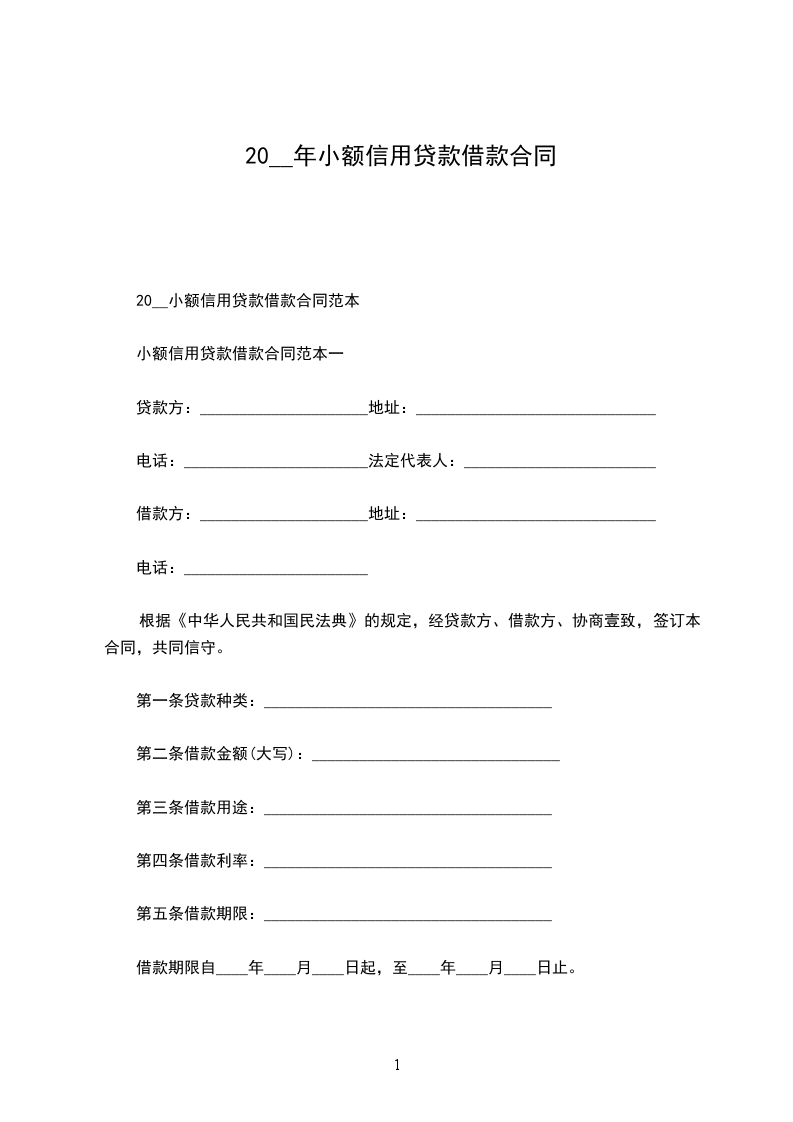 20__小额信用贷款借款合同范本