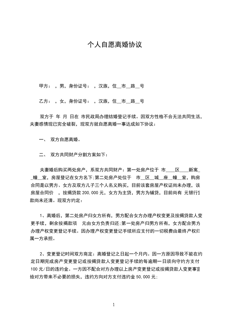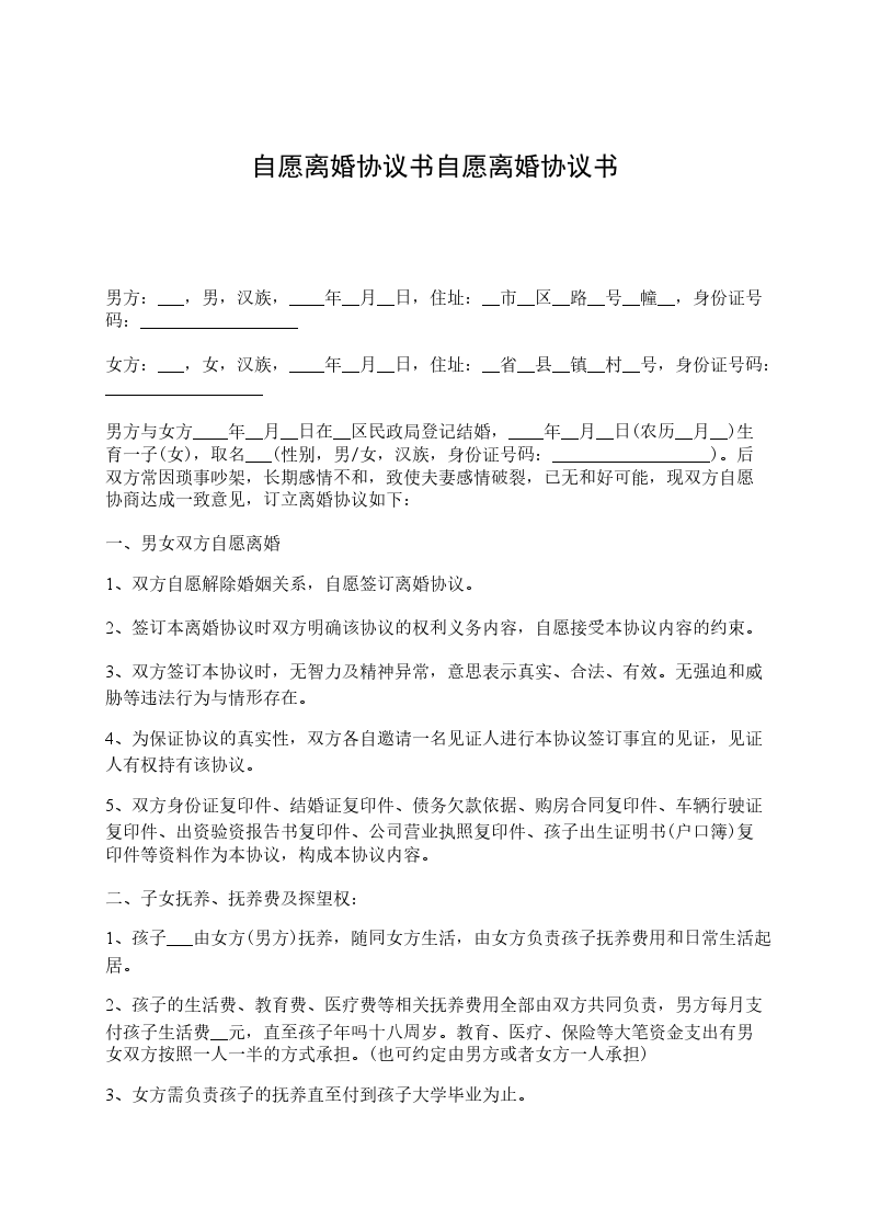 军人自愿离婚协议书范本
