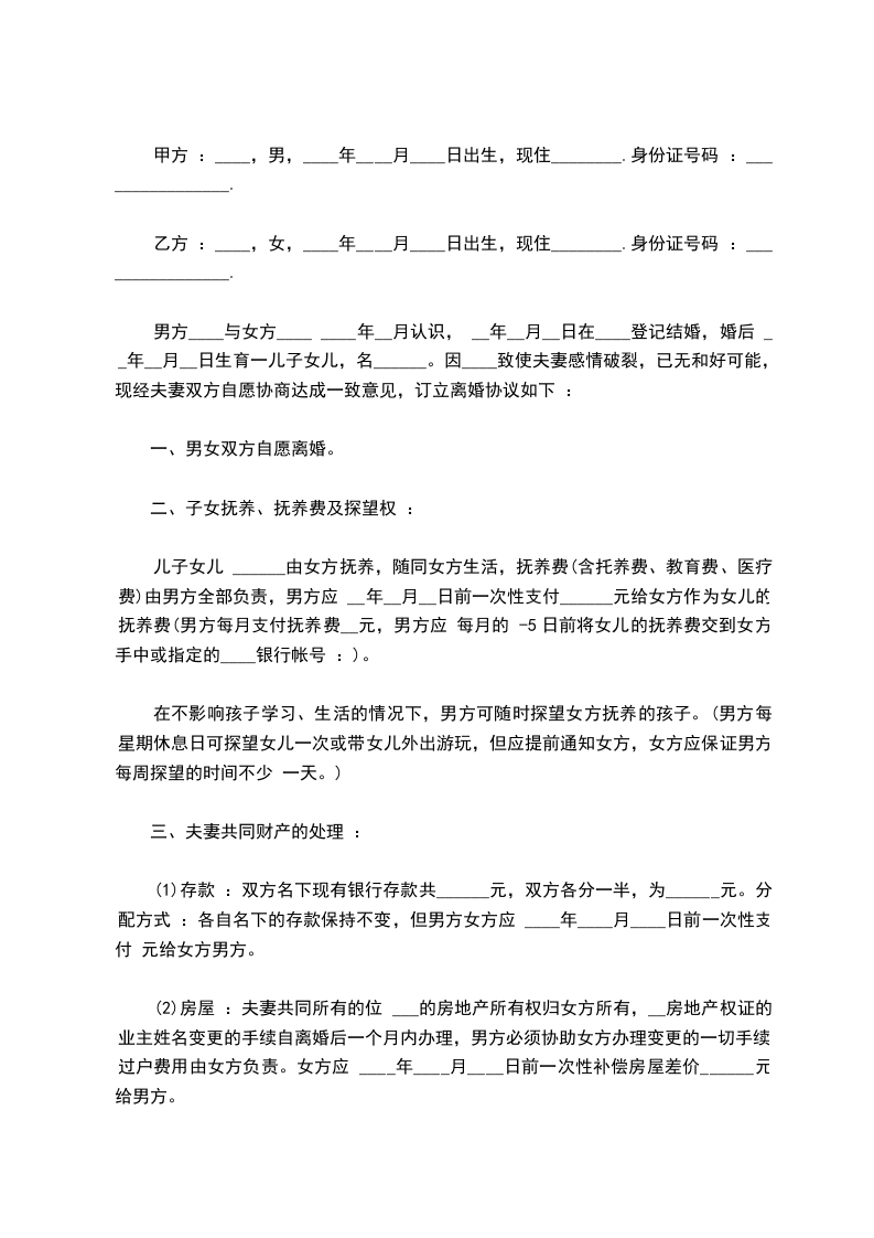 双方经过充分考虑、协商,现就离婚问题达成协议如下(简述双方离婚的原因):_________________