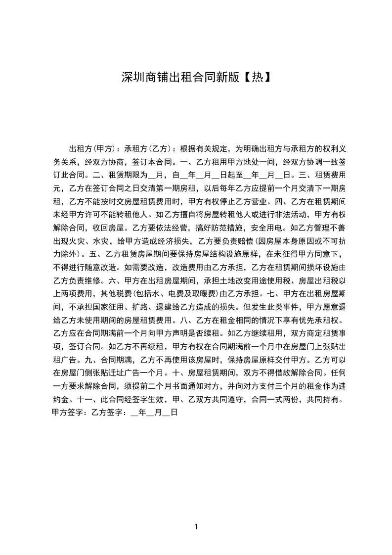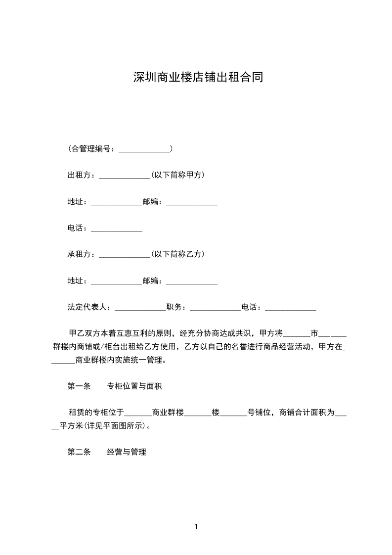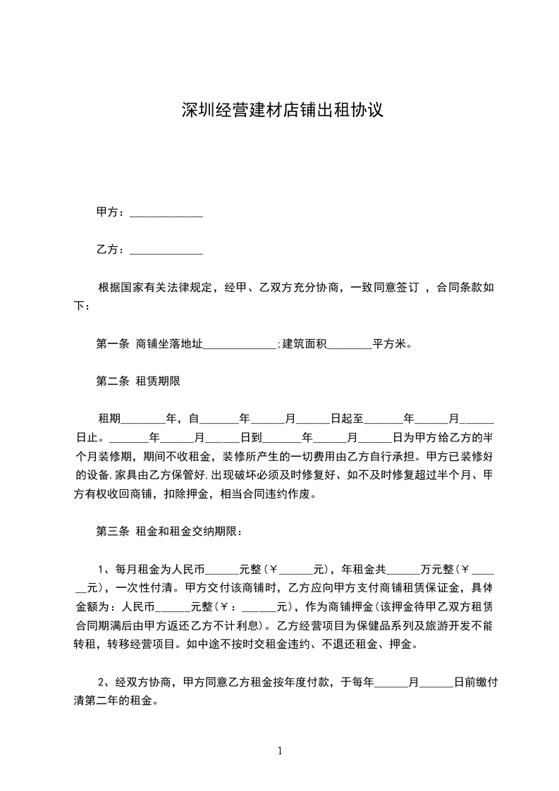 1、乙方在签订合同时须向甲方缴交店铺设施抵押金人民币___元,押金不计息。