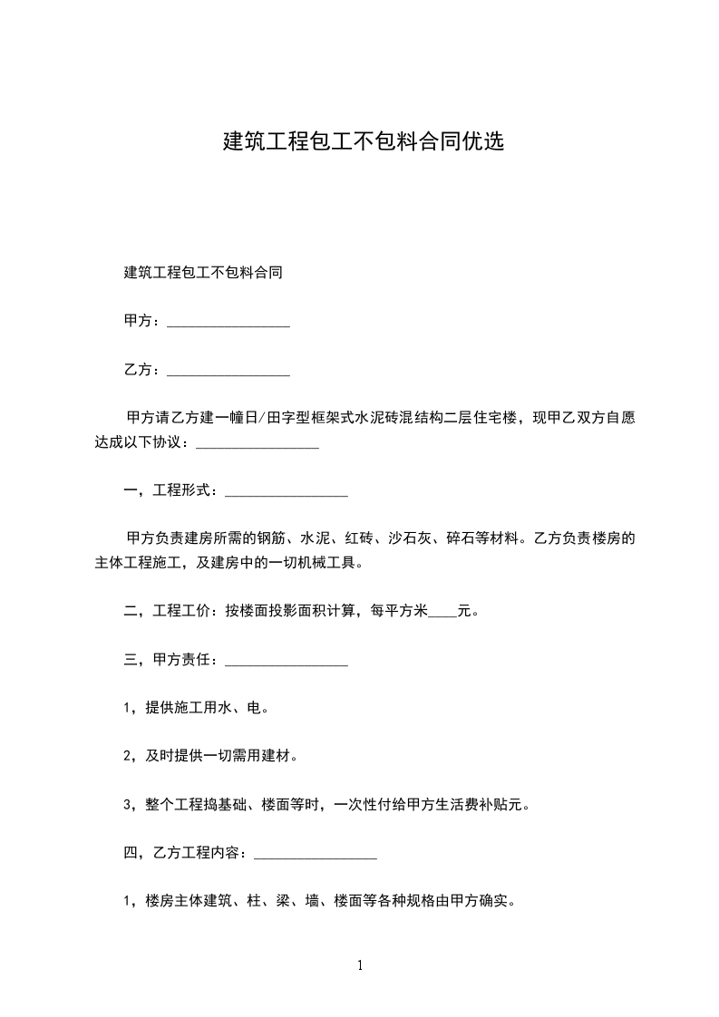 建筑工程包工不包料合同