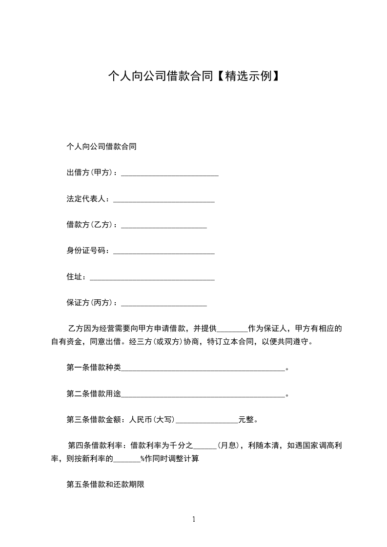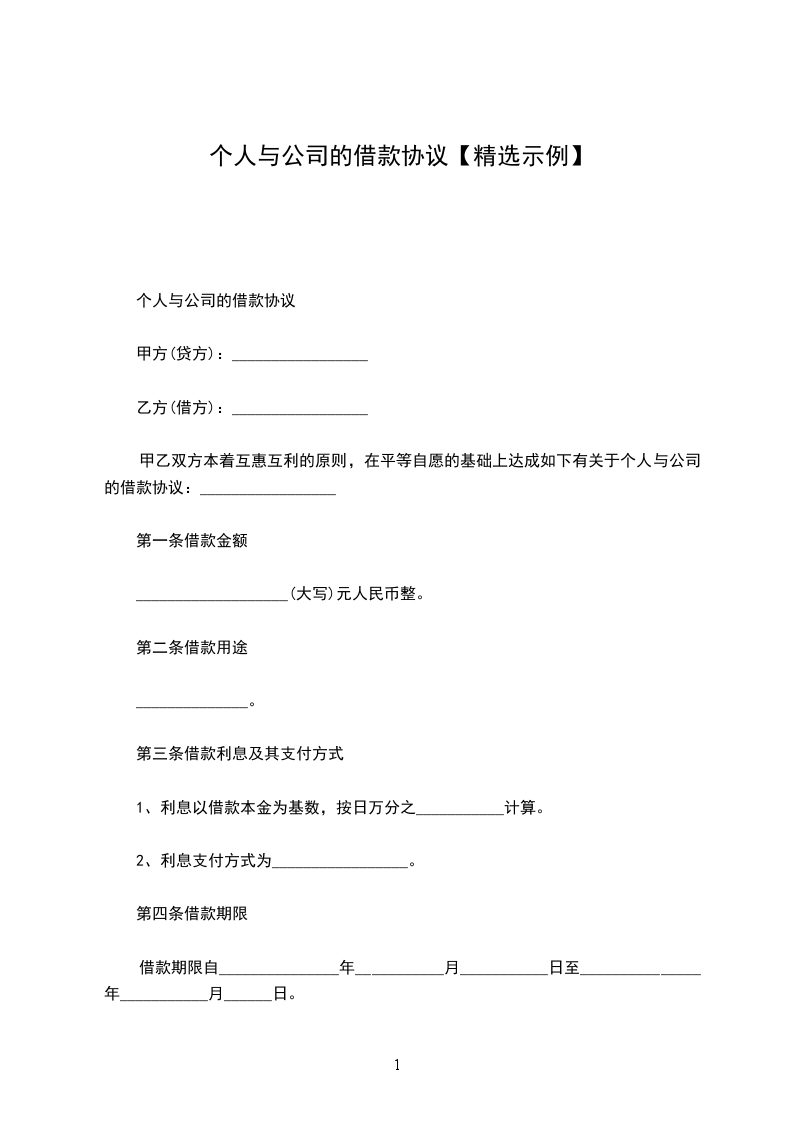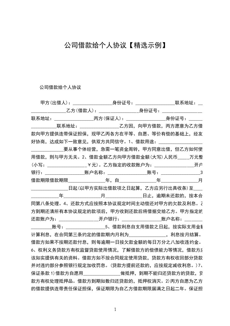 公司借款给个人协议