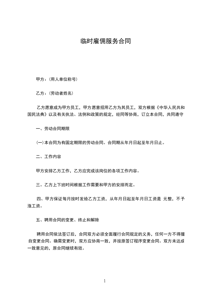 (一)本合同为有固定期限的劳动合同。合同期从______年____月____日起至______年____月____日止。