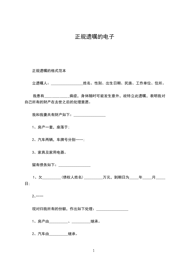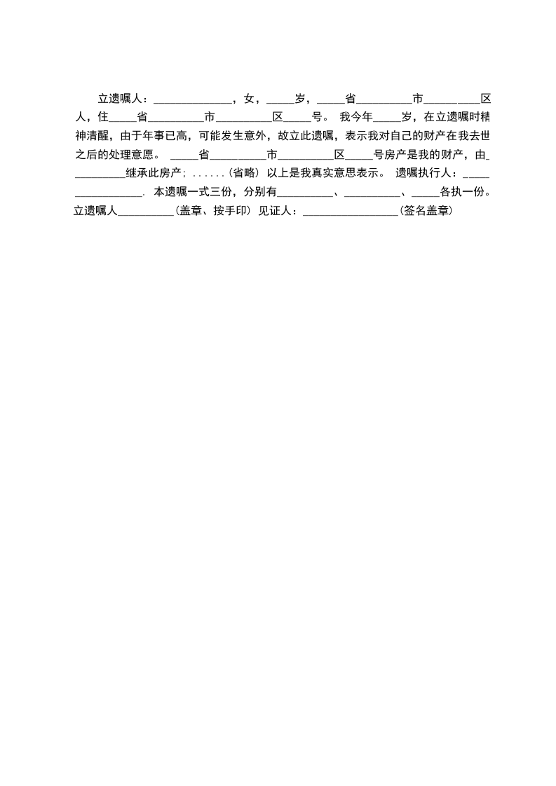 我患有_____________病症,故特立此遗嘱。以备不测之时免除家庭遗产纠纷。