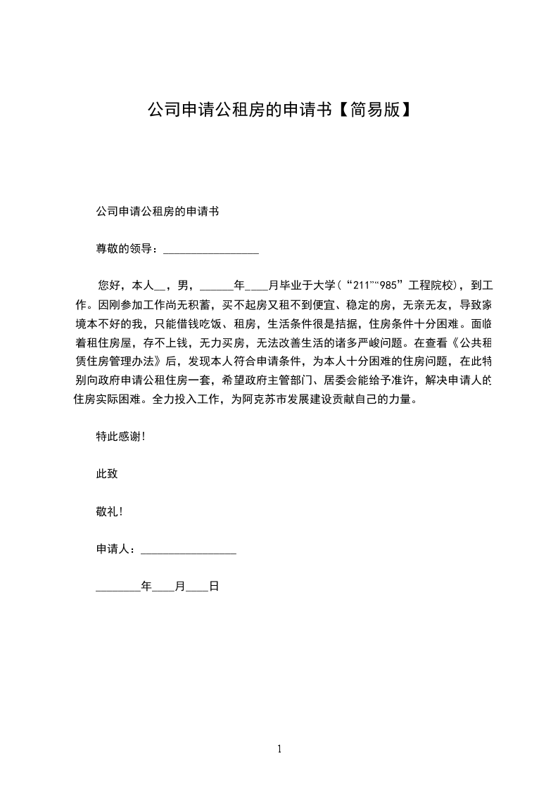 您好,本人__,男,______年____月毕业于大学(“211”“985”工程院校),到工作。因刚参加工作尚无积蓄,买不起房又租不到便宜、稳定的房,无亲无友,导致家境本不好的我,只能借钱吃饭、租房,生活条件很是拮据,住房条件十分困难。面临着租住房屋,存不上钱,无力买房,无法改善生活的诸多严峻问题。在查看《公共租赁住房管理办法》后,发现本人符合申请条件,为本人十分困难的住房问题,在此特别向政府申请公租住房一套,希望政府主管部门、居委会能给予准许,解决申请人的住房实际困难。全力投入工作,为阿克苏市发展建设贡献自己的力量。