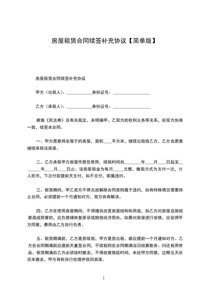 房屋租赁合同续签补充协议