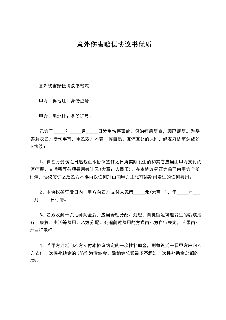 意外伤害赔偿协议书格式