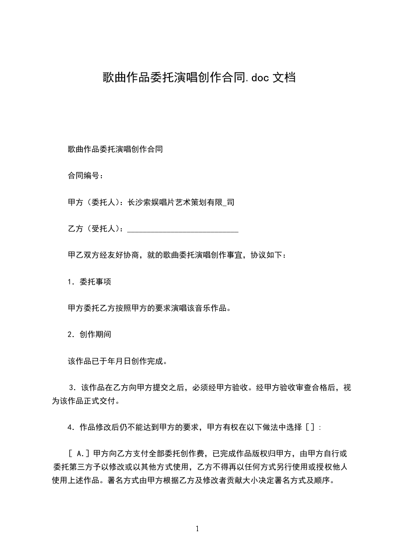 歌曲作品委托演唱创作合同