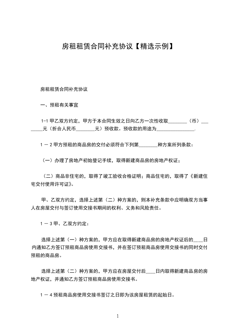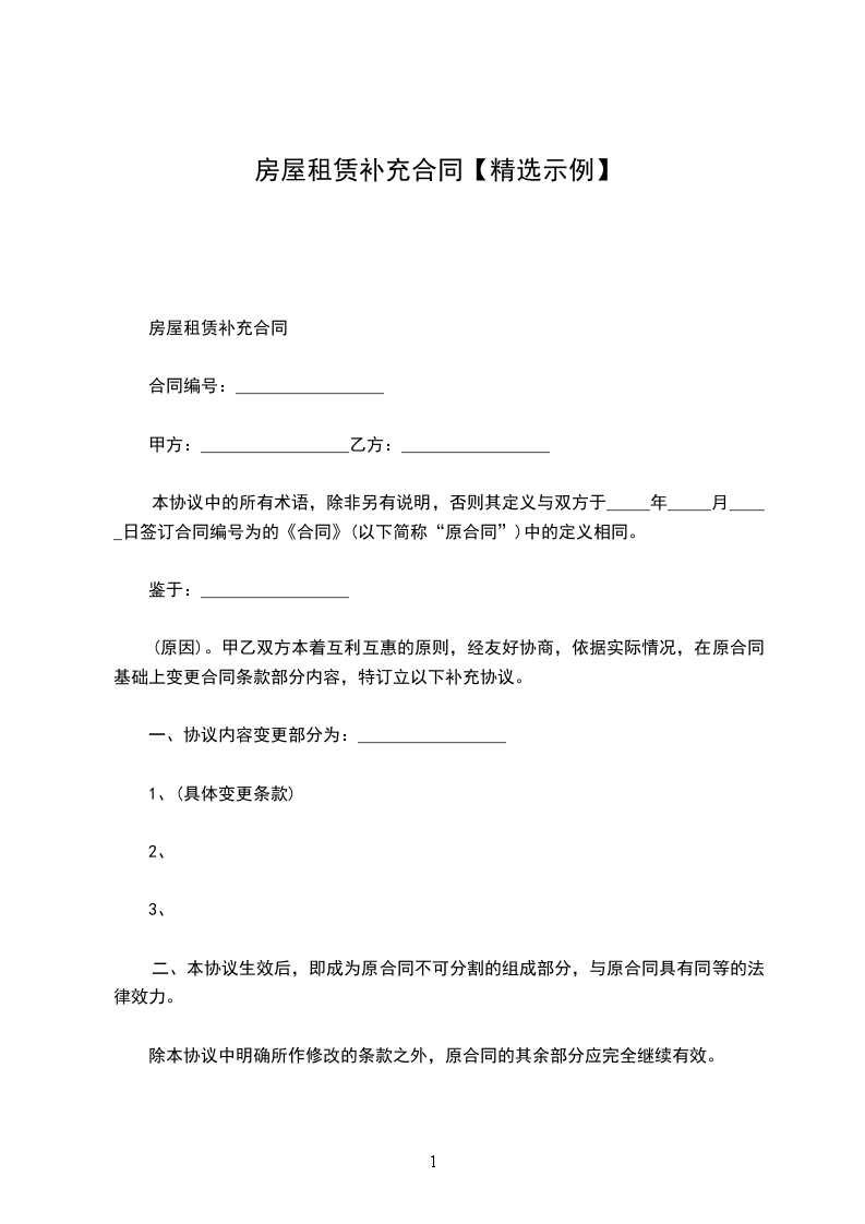 房屋租赁补充协议