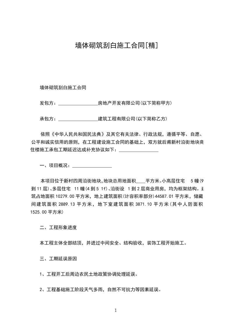 墙体砌筑刮白施工合同