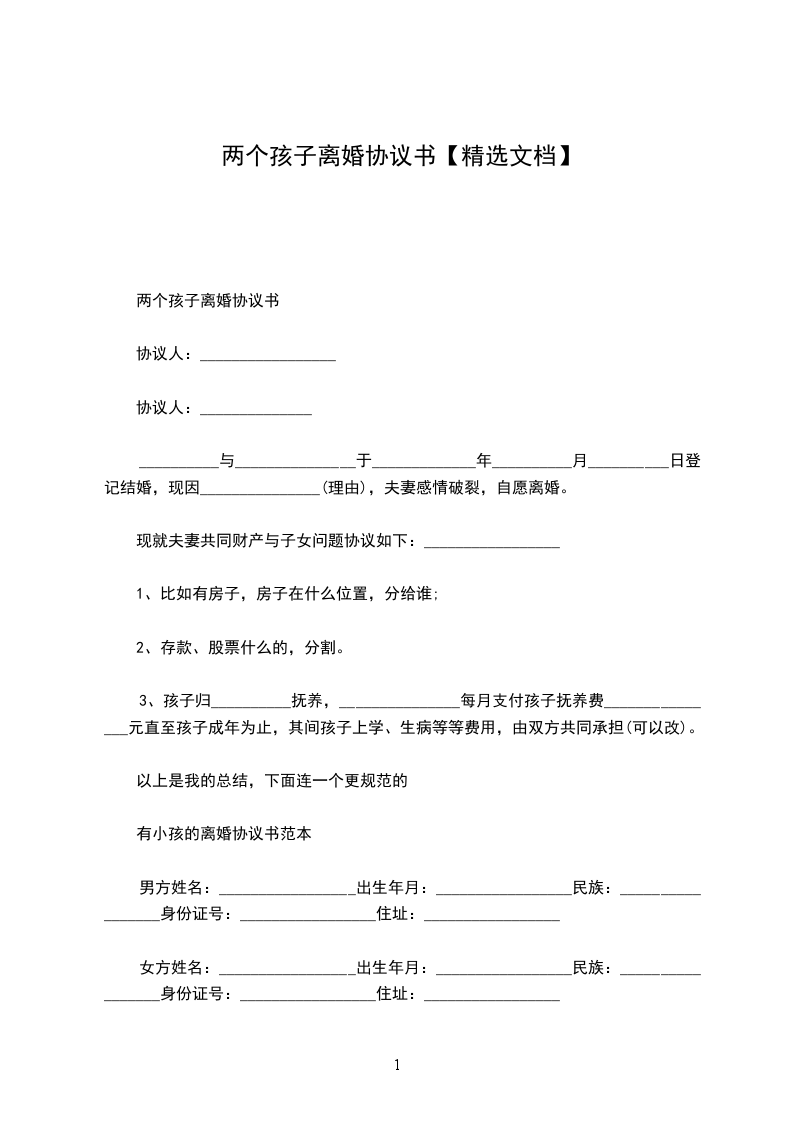 两个孩子离婚协议书