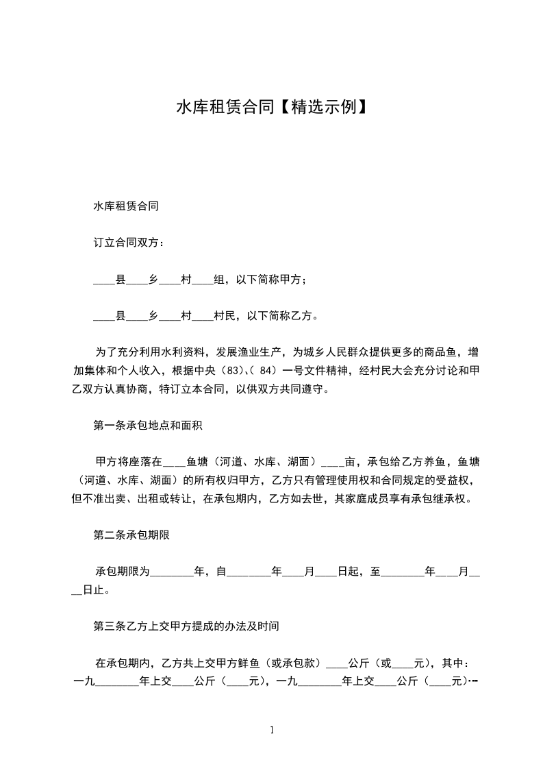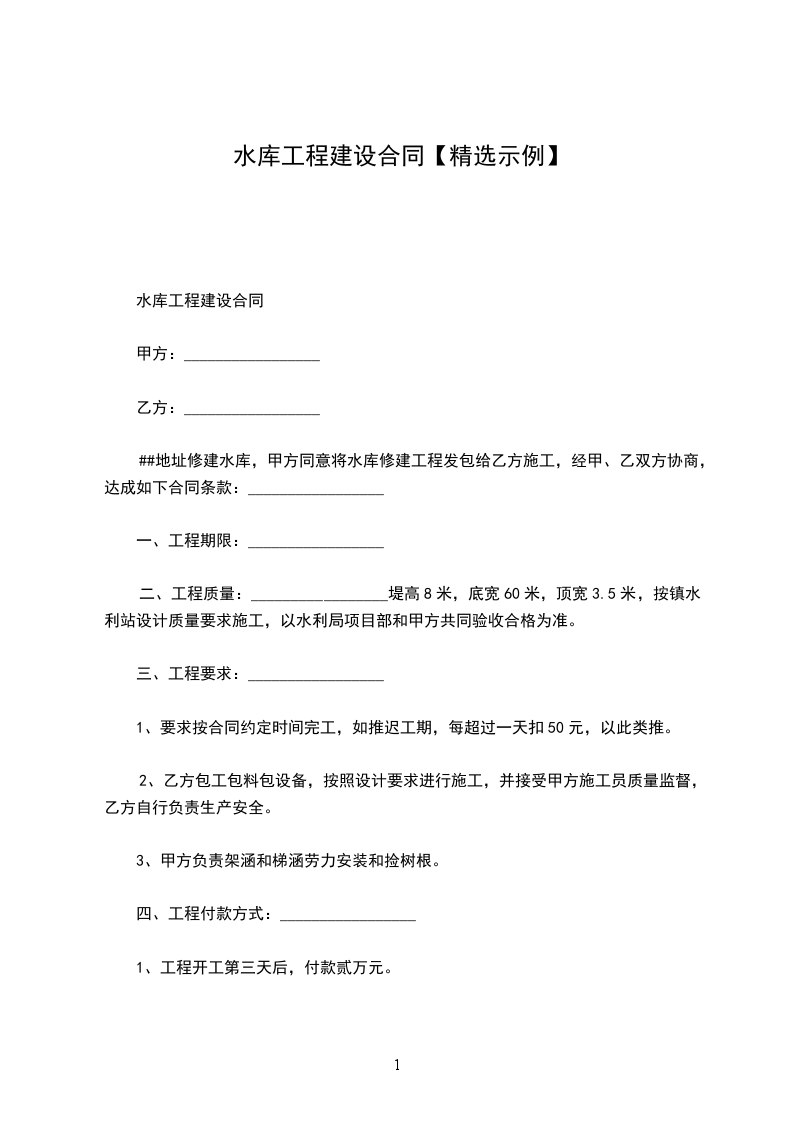 ##地址修建水库,甲方同意将水库修建工程发包给乙方施工,经甲、乙双方协商,达成如下合同条款:_________________