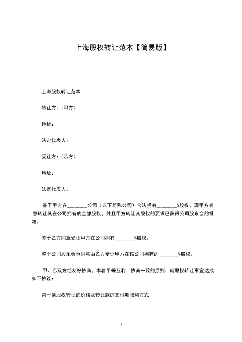 上海股权转让范本