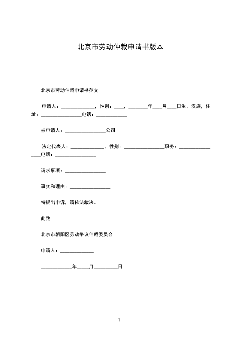 北京市劳动仲裁申请书范文