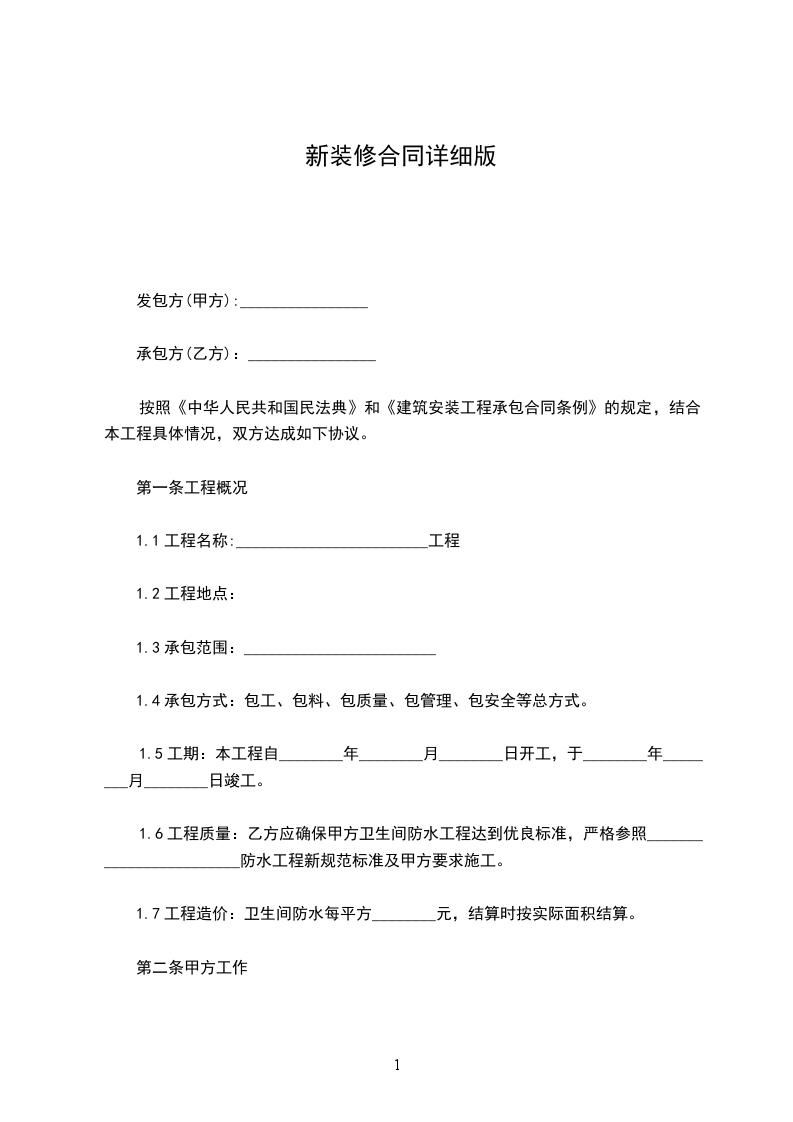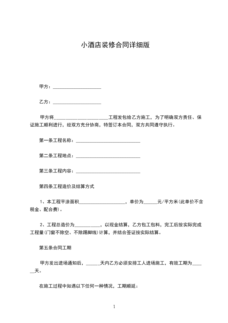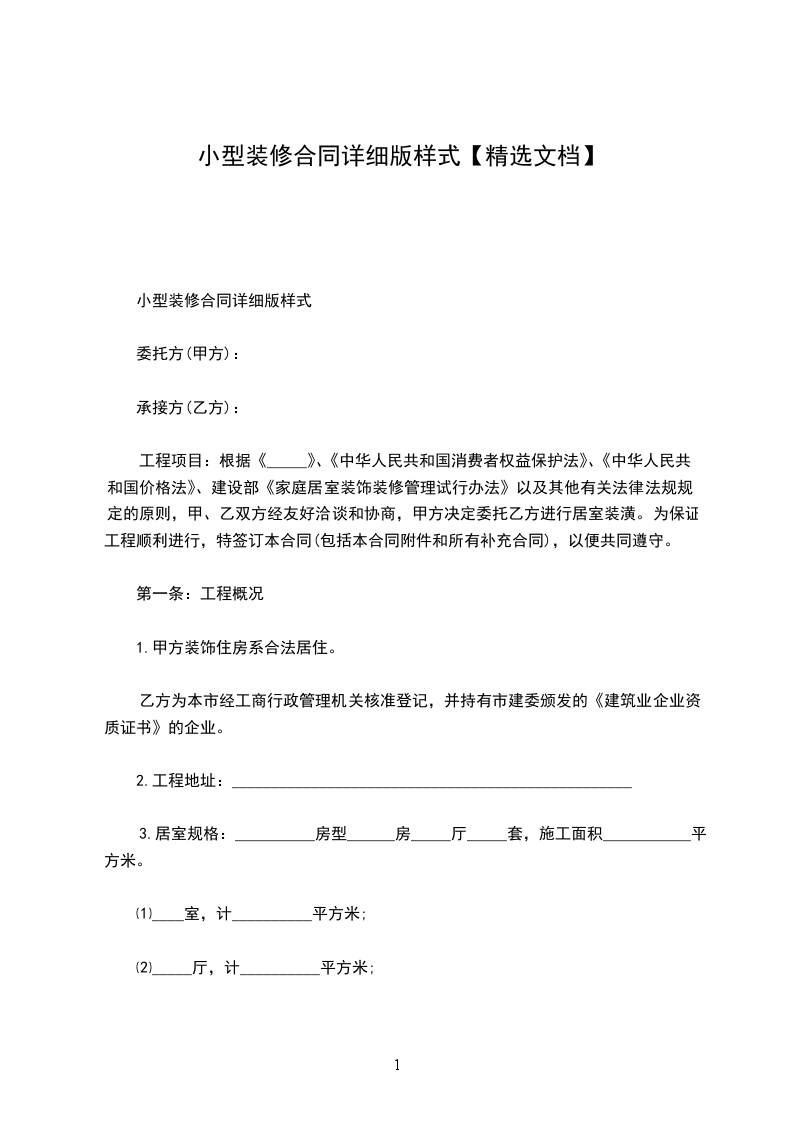 小型装修合同详细版样式