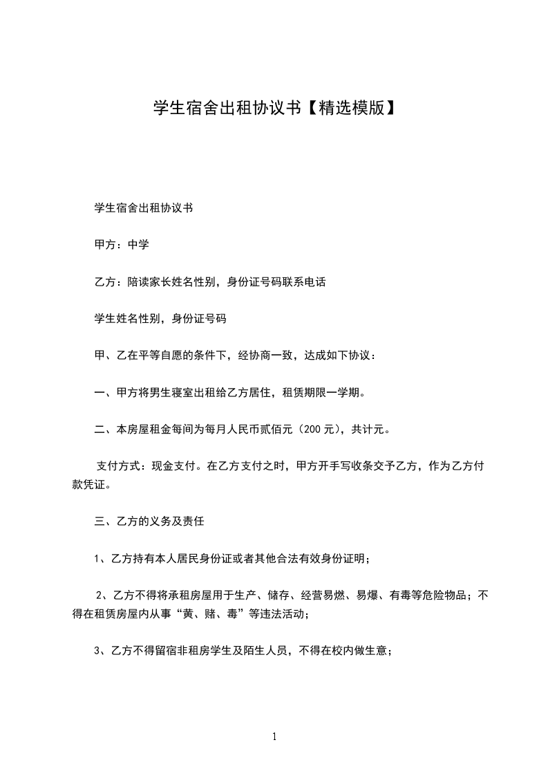 一、甲方将男生寝室出租给乙方居住,租赁期限一学期。