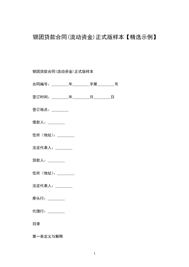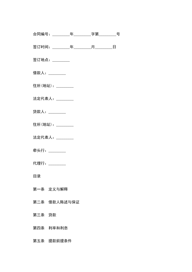 代理行:_________借款人因_________,向以上各家银行组成的银团申请_________期流动资金贷款。根据我国有关法律规定,经各方当事人自愿、平等协商,一致同意签订本贷款合同(以下简称“本合同”)